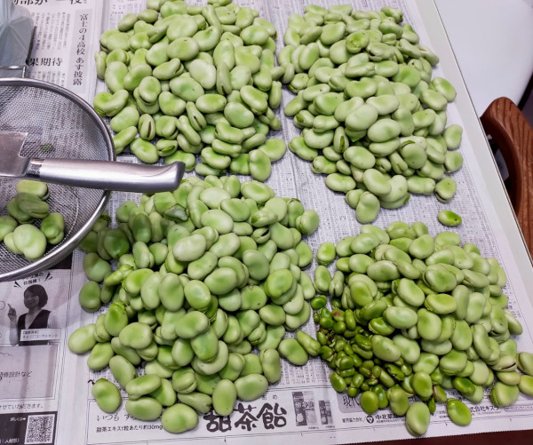 茹で上がってこんなんなったーと写真を撮ったのはよいものの、冷凍庫がそらまめでぱんぱんになりました。