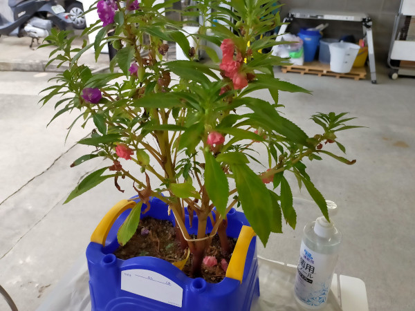 学校から持ち帰ってきたとき、元気がなかったので、肥料をあげたところ、すくすく育ち、茎が太く花がバンバン咲いているのですが、大事なのは、「花が枯れ種が出来て、それが熟して最後にはじける観察をする宿題」を完成させることなのでした。