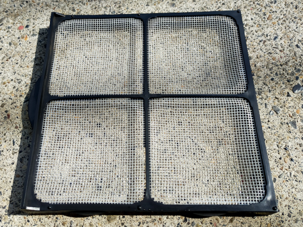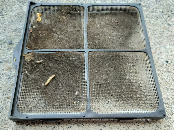 そういうときのためのエアコンフィルターなのに、それが無いので、網を掃除するだけではダメなのです。だって網ですよ?この目の粗い・・・。