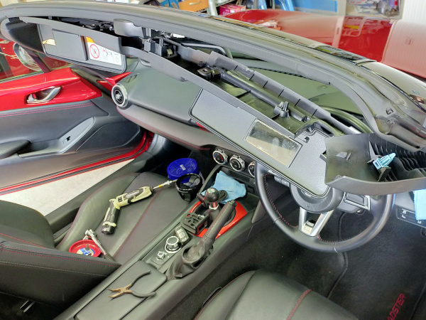 本日はもうすぐご納車のマツダロードスター君の、バニティミラーを交換しています。前のオーナー様から買い取った時から、ミラーの蓋がカパカパしておりしっかり閉まらなかったため、部品ごと新品への交換となりました。