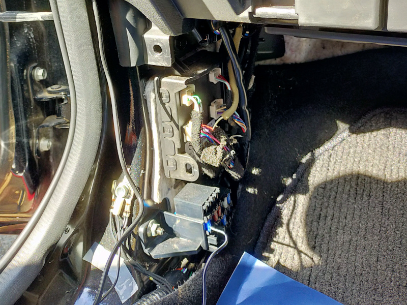 デミオのドラレコ本体は、お客様の持ち込みです。(アマゾンで購入され、配送先を弊社に指定していただき直接届きました。良い時代になりましたね)。配線はヒューズボックスから電源を引いて綺麗におさめ、カメラはご指定のあった助手席上方へ、2時間ほどで作業完了です。