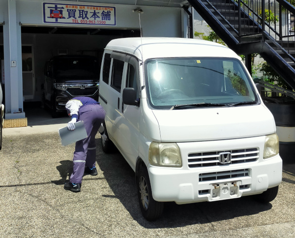 いつもの陸送会社さんが丹念に車をチェックしていきます。
