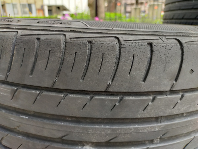 古いタイヤは、まだ溝はありますが耳の部分がひび割れておりました。