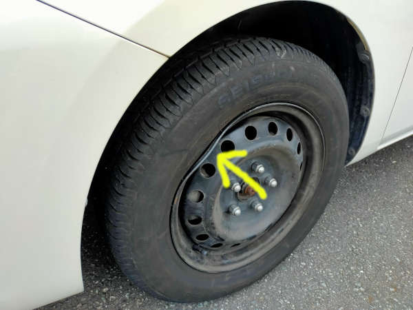 ホイールキャップが外れているので、すぐにわかってしまったかと思うのですが