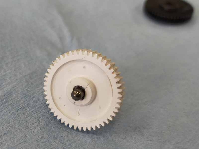 金属製歯車の対策品に交換して、無事修理完了です。修理費用は12,000円です。