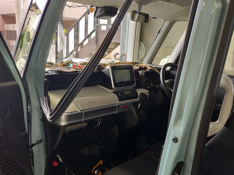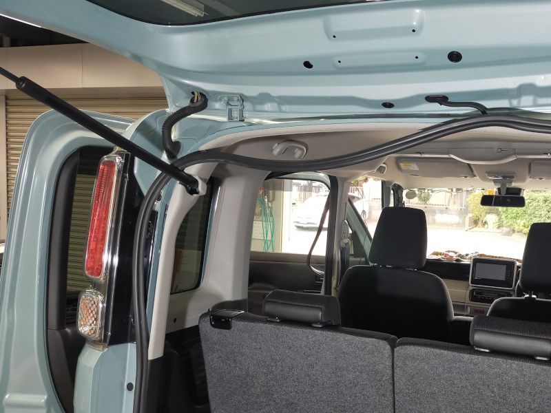 本日はもうすぐ納車のスズキのスペーシアに、ドライブレコーダー前後カメラを取付ました。ちょっと写真が何やっているかわからない感じで申し訳ありません。結構バラしたところを撮り忘れました・・・