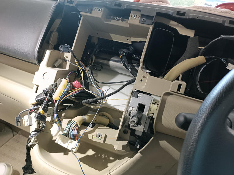 さて、品物が入荷したので本日作業日となります。オーディオパネル類をすべて外し、古いナビを取り出し、次のナビを取りつけていきます。