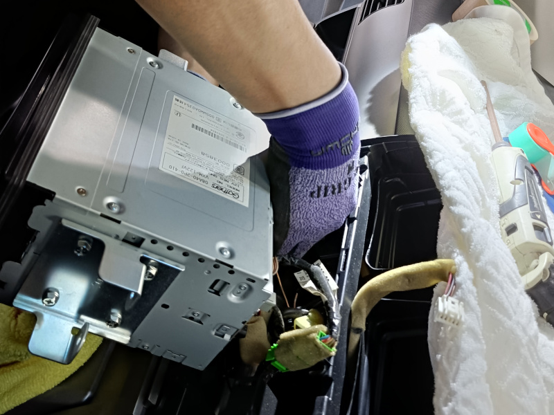 まず、トヨタアクア(純正ワンセグナビ+純正カメラ)とトヨタヴィッツ(ストラーダフルセグナビ+ストラーダバックカメラ)のナビのみの入替でございます。お分かりのかたは、「ああ、変換の変換でごっちゃになるやつね」と思っていただけるかと思います。ナビのみなので、バックカメラ・テレビアンテナ・GPSアンテナは車体に残っているものをそのまま使用します。