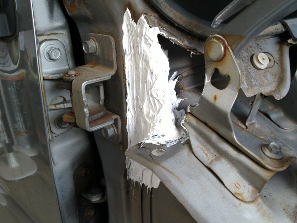 そんなわけで、自動車用のコーキング剤を塗りこんで