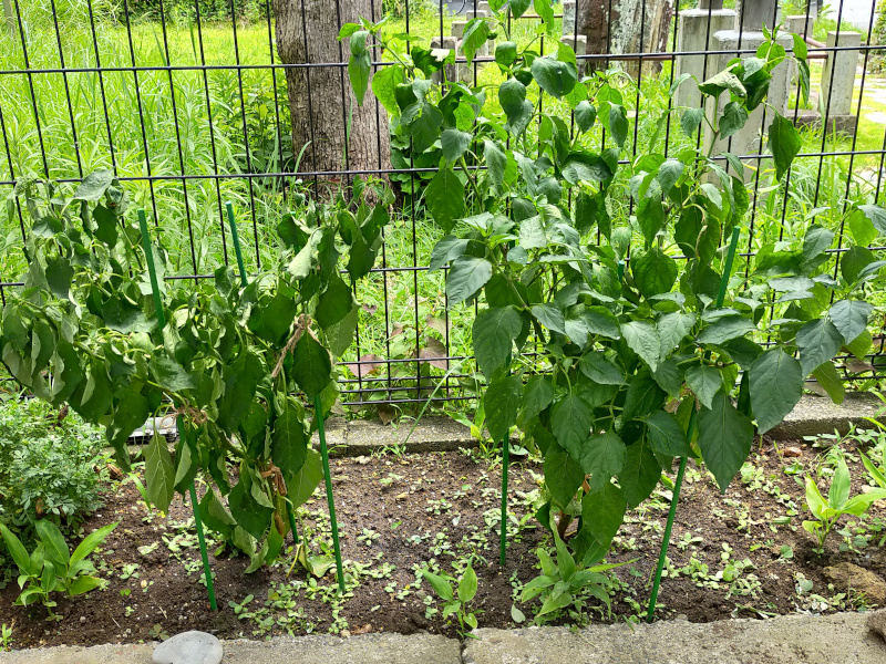 弊社店舗脇のスペースに、5月から苗を植え、収穫を楽しんでいたピーマンが