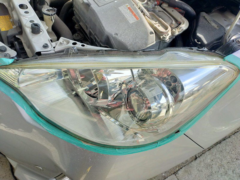 ここのところ、車検で入ってくるお車のヘッドライトを、ずっと磨いている気がするなと、記録にとった写真を振り返ると、本当にライト磨いてる写真ばかりで、ヘッドライト磨き専門店みたいだ・・・。