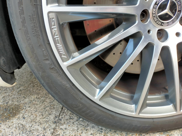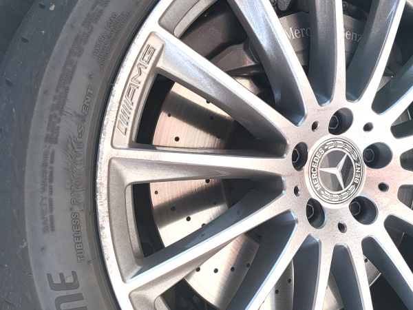 先日、弊社でお車をご購入いただいたお客様より「左前の縁石が見えず、ホイールを傷つけてしまった」とご相談をいただきました。拝見させていただくと、とても綺麗なAMGホイール20インチに、いわゆるガリ傷が10センチほどついております。