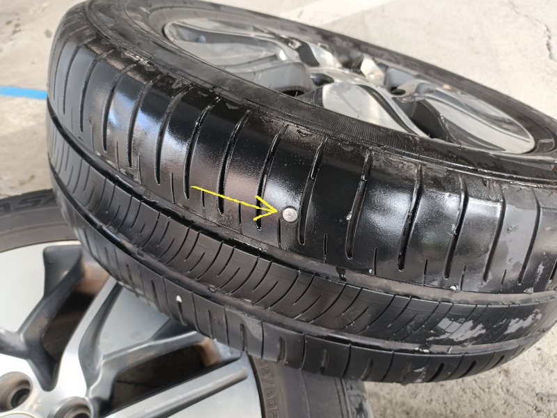 さて、ステップワゴンRK1のお客様よりご依頼いただいき、出したタイヤに、ネジが刺さっているのが見つかりました(;’∀’)、年末にしまう時には気づかなかった・・・すみません。急いでパンク修理です。