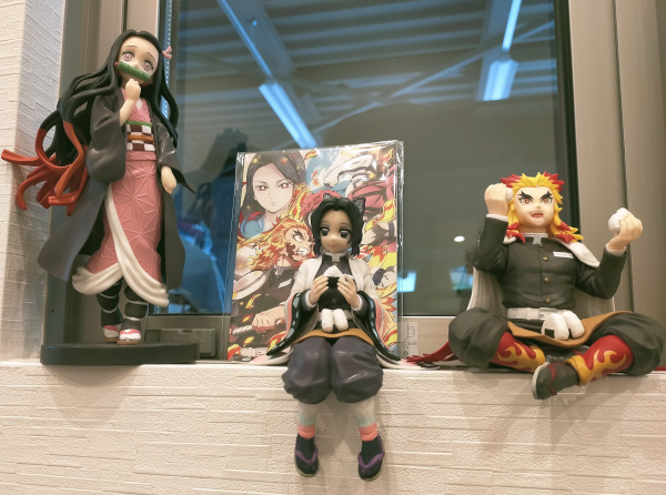 増えていくフィギュアたち 2021年9月24日kurumakaitorihonpo いよいよ明日は無限列車ですね。と、いつも鬼滅トークで、一緒に盛り上がっていただけるお客様が本日ふらっとお立ち寄りくださり、煉獄さんの 「うまい!!」が聞こえてきそうなフィギュアをプレゼントでいただきました。おおおお!!煉獄さん。もう煉獄さんを見ているだけで胸がいっぱいになります。この表情も素敵ですね。元気が湧いてくる感じです。O様、いつもありがとうございます。心を燃やして仕事に励みます\(^_^)/