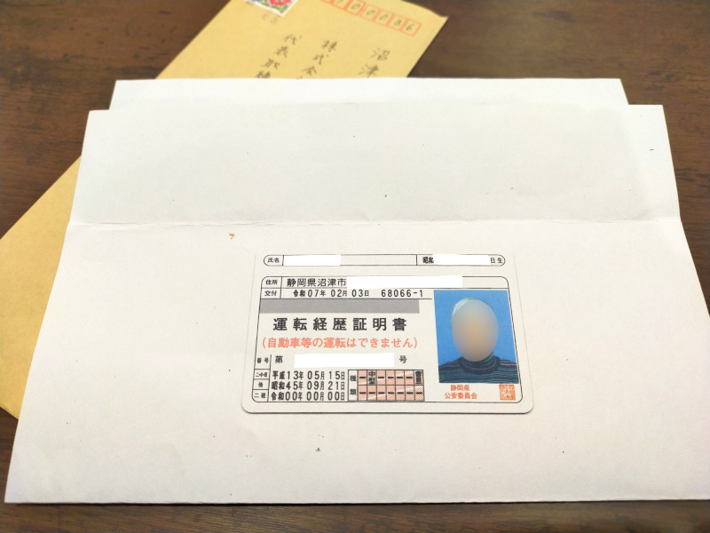 ※こちらは後日送ってくださった運転経歴証明書です。弊社は免許返納サポート店として東部では唯一静岡県警へ加盟しております。免許返納に伴うお車の売却のお客様は、サポート事業の一環として、買取金額プラス査定もございます。お申し出くださいませ。