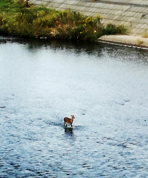 鹿さん、悠々と泳ぎ、10分ぐらいして黒瀬橋南岸に消えていきました。