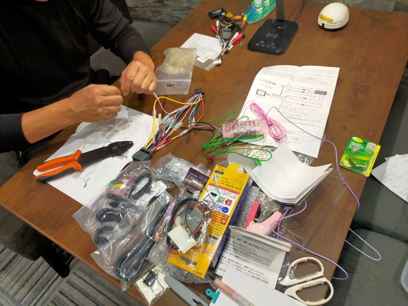 先日ドラレコを取付る際に車両を拝見し、お持ち込みのオーディオの型番(DMH-SF700)が分かりましたので、作業の前に、GT型フリードへ繋ぐための変換ハーネスやケーブル類をお調べしました。そして適合が取れていない部品に関しては、人柱となって玉砕する覚悟でお車をお預かりしました( ´∀` )