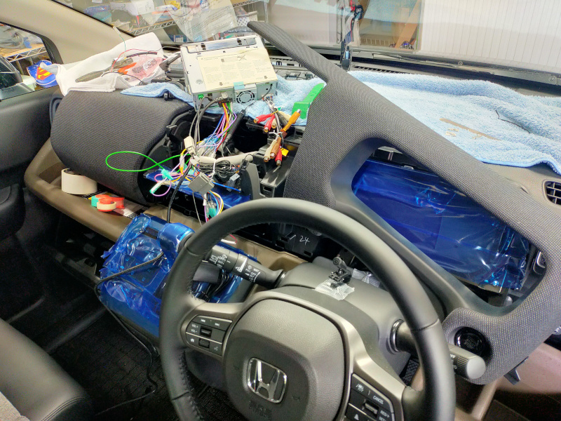 今回のGTフリードくん、JF5.6型のN-BOXやRP6.7.8型のステップワゴンと同じタイプの新型カプラー配線となっていましたが、それよりもさらに新しいため、ステアリングリモコンの変換は24Pで適合がとれず、もう少し時期がすぎて適合した部品が出たらまた繋げましょうということになりました。