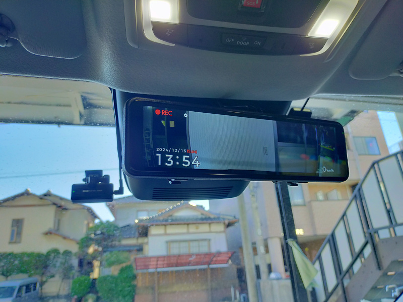 ドラレコのカメラは、左側指定でしたので、助手席側のワイパーゴムが作動する範囲にお取り付けしました。(視界を邪魔しないようにと、カメラをフロントガラスの上の方に設置すると、ワイパーが届かないので、雨の日の画像が雨粒だらけになります。ご注意ください)
