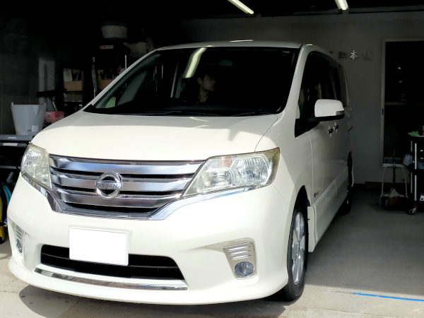 本日は下田市のE様に、日産セレナをご納車しました。こちらのお車は、長泉町のお客様より買い取ったお車で、平成24年式、7万キロ、アルパインフリップダウンモニター付き、禁煙、ハイウェイスターハイブリッド車となります。雪の降らない地域ですから下回りも綺麗です。