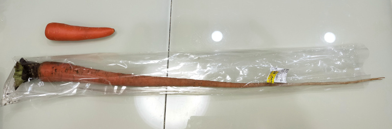 お正月に義妹より人参をいただきました。(上が普通の人参です。せっかくなので長さを比較してみました。)