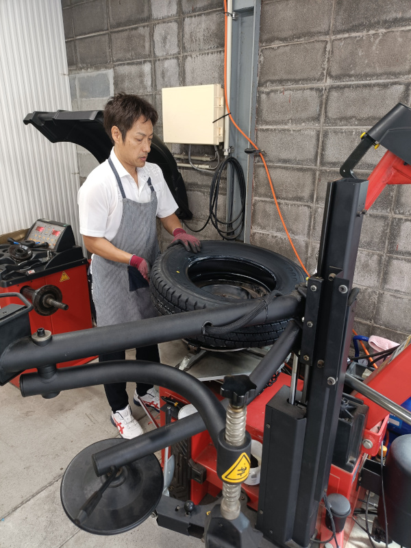 インチは小さいですが、貨物用タイヤですので、重くて厚い、猛暑の中汗だくです( ´∀` );