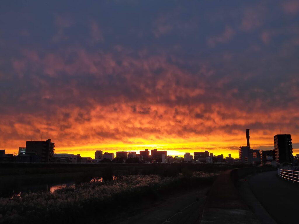 だいぶ秋が深まってきました。今日はとても夕陽が綺麗でした。~会社すぐ近くの狩野川の堤防より~