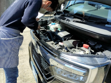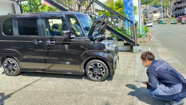 外装の傷や凹み、タイヤの摩耗状況、オイル漏れなどを総合的に見させていただきます。