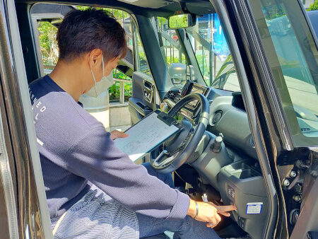 エンジンのかかり具合、エアコンの動作状況や、ナビゲーションその他オプションの確認をさせていただきます。