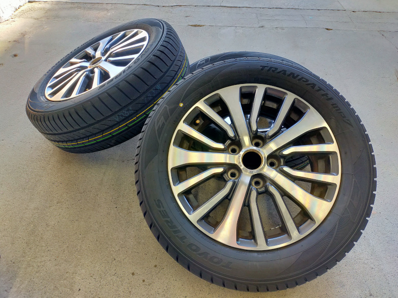 タイヤも4本新品と交換です。TOYOタイヤのミニバン専用、そして2025年製造のほやほやのタイヤを装着しました。