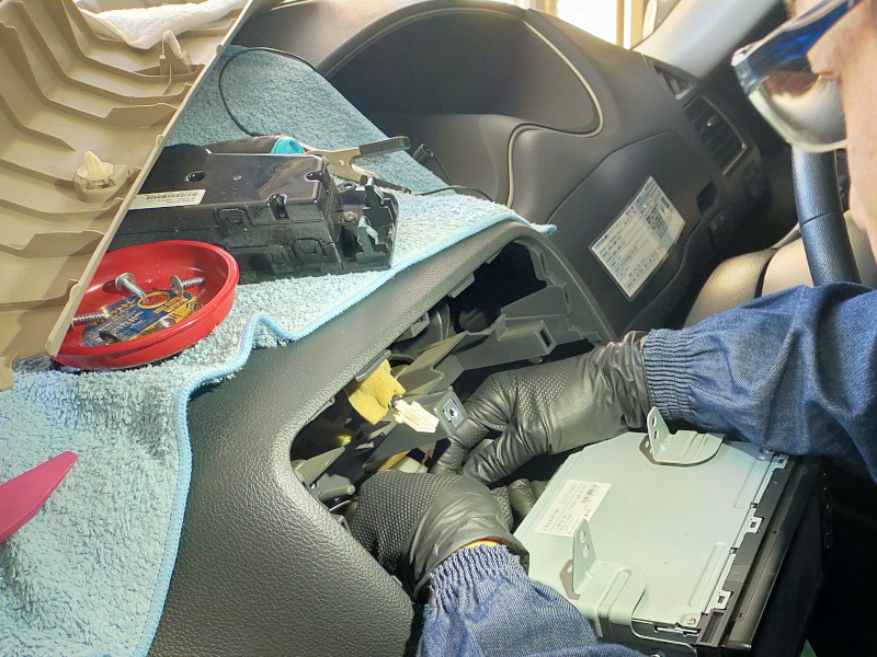 社外なので、映像の変換コネクターなども間に噛ませないといけません。カメラは安いが、工賃が高いパターンです。お客様にお見積りをし、GOサインをいただきましたので、わっせわっせと本日お取り付けいたしました。新規にカメラを取付けるより時間がかかり、予定より1日多くいただきました。