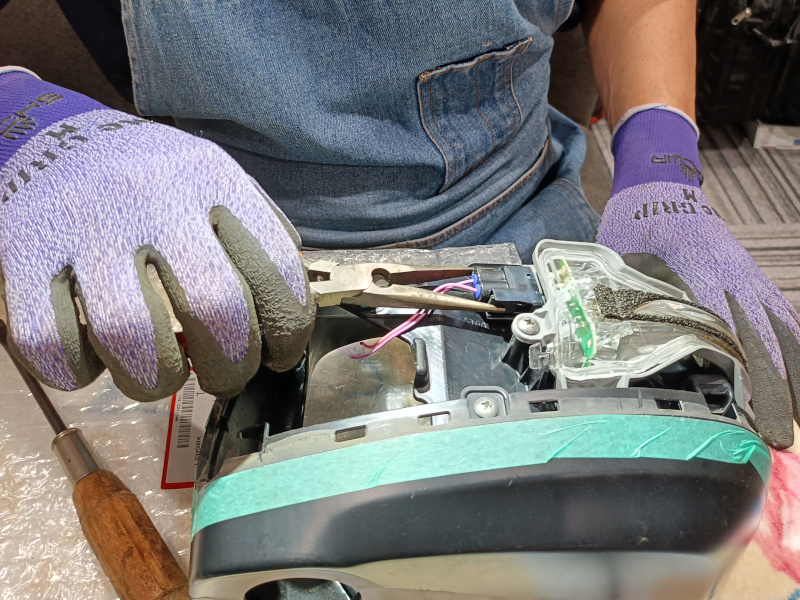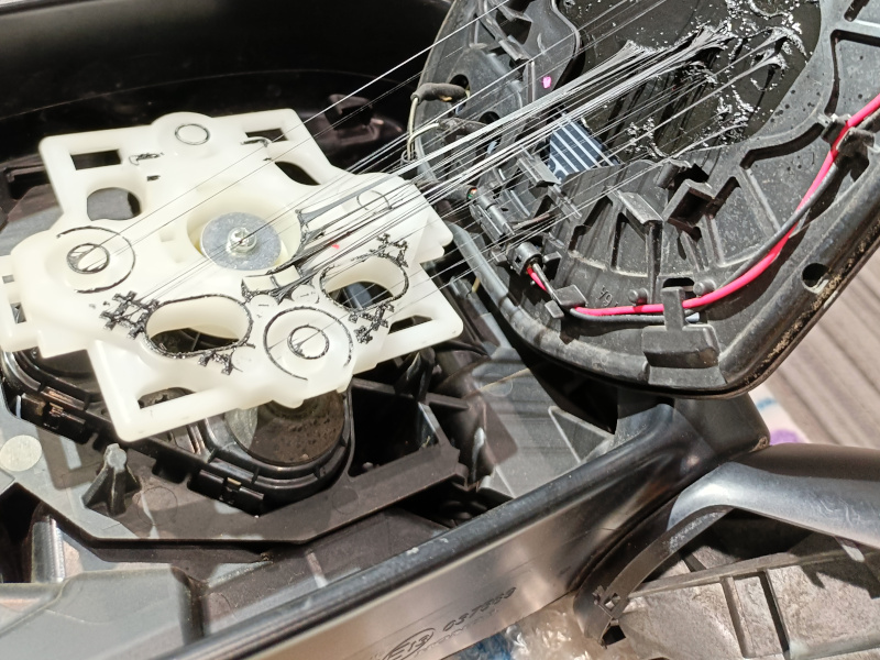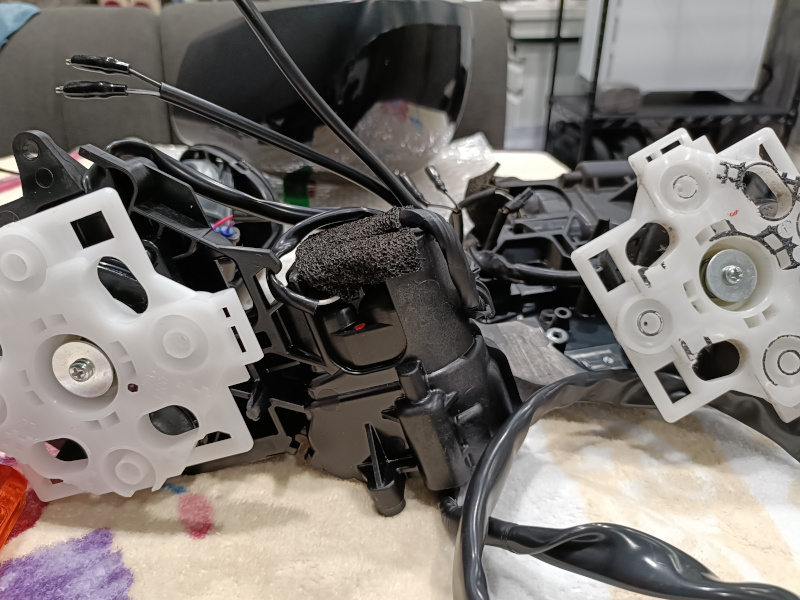 ドアの内張りを外し、ミラーを取外し、分解分解・・・していくと(←簡単に書きますが、とてつもなく大変です)、ぬちゃーっとなった後に見えてくるのがモーター部分です。これを新しいものと交換し、それだけではなく、配線も一体になっておりますので、今までついていたものと、全く同じようにカプラーを作って、やっと取付です。弊社では25,000円で少々のおつりとなります。