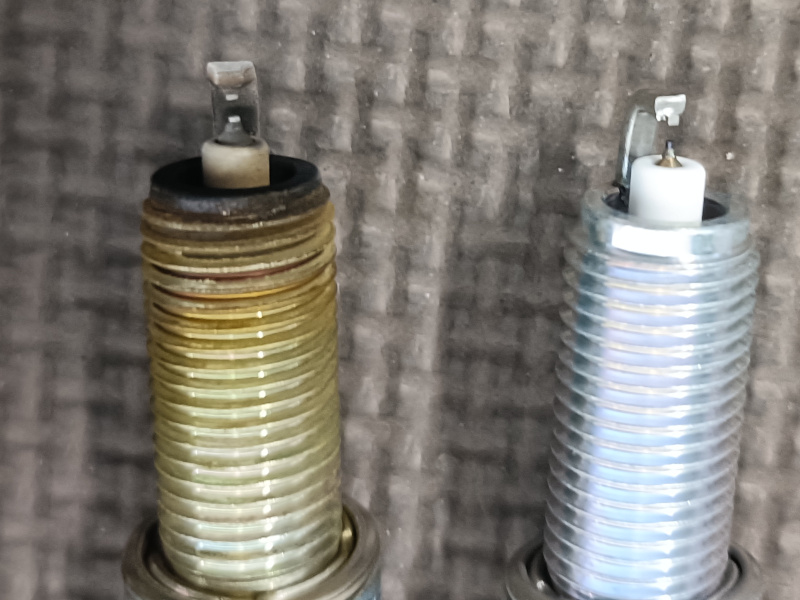 こちらプラグの新旧比較です。プラグとコイルは通常、10万キロが寿命とされており、なんとなく不調からの急死のあるあるな部品です。故障すると通常走行中に急に加速できなくなったり(アクセル踏んでも反応しない)、アイドリングが超不安定になったりと、ちょっと怖いんです。そのため、弊社では10万キロ走行を超えたお車には、壊れる前に交換をおすすめします。(ご納得いただいた上で「交換しない」というのももちろんアリです。)NGKイリジウムプラグと日立製コイルという二本立てで、4本交換工賃込41,800円です。安い!これでエンジンの始動性向上、アイドリング時の振動軽減、燃費の改善、加速性能の向上等、この先も元気よく走っていただけると思います。。K様ありがとうございました!
