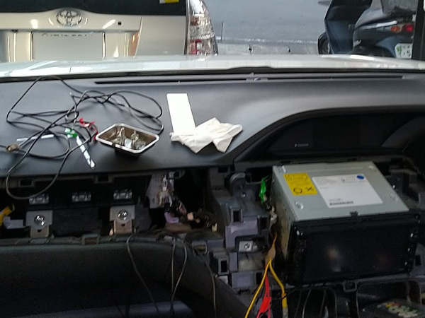 業者さんに任せてみたものの、業者さんもまさか外部出力のないナビとは思わずに